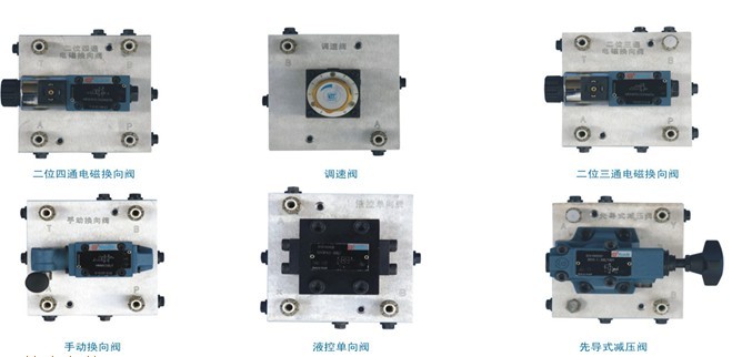 压力表,溢流阀,节流阀,单向阀,液控单向阀,调速阀,顺序阀,减压阀,双作用油缸,二位四通电磁换向阀,二位四通手动换向阀,二位三通电磁换向阀,“O”型三位四通电磁换向阀,“Y”型三位四通电磁换向阀,压力继电器,行程开关(常开)等。